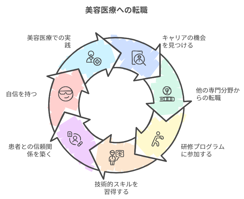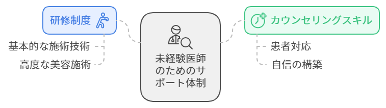 また、大手美容クリニックをはじめ、一部のクリニックでは未経験者向けに充実した研修プログラムを提供しており、技術的なスキルだけでなく、患者との信頼関係を築くためのカウンセリングスキルも重点的に学ぶことができます。このような教育体制により、転職市場において美容未経験の医師でも、短期間でスキルを習得し、自信を持って施術に取り組むことができるのです。