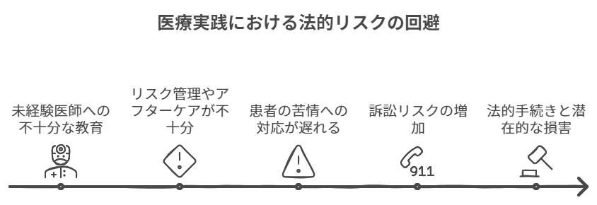 未経験の医師に対して、十分なトレーニングや指導が行われていないクリニックでは、技術的なミスが発生しやすくなります。これは患者様の期待に応えられなかったり、施術後のトラブルが生じる原因となり、訴訟に繋がるリスクが高まります。