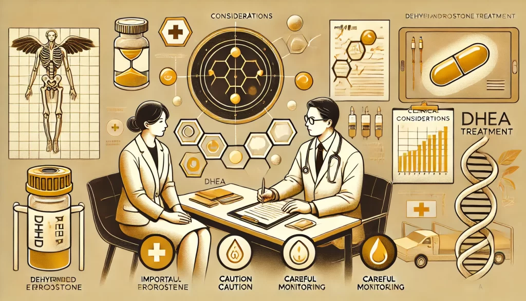 DHEA治療を実施する際には、患者の安全を確保し、治療効果を最大化するためにいくつかの臨床的な注意点を考慮する必要があります。