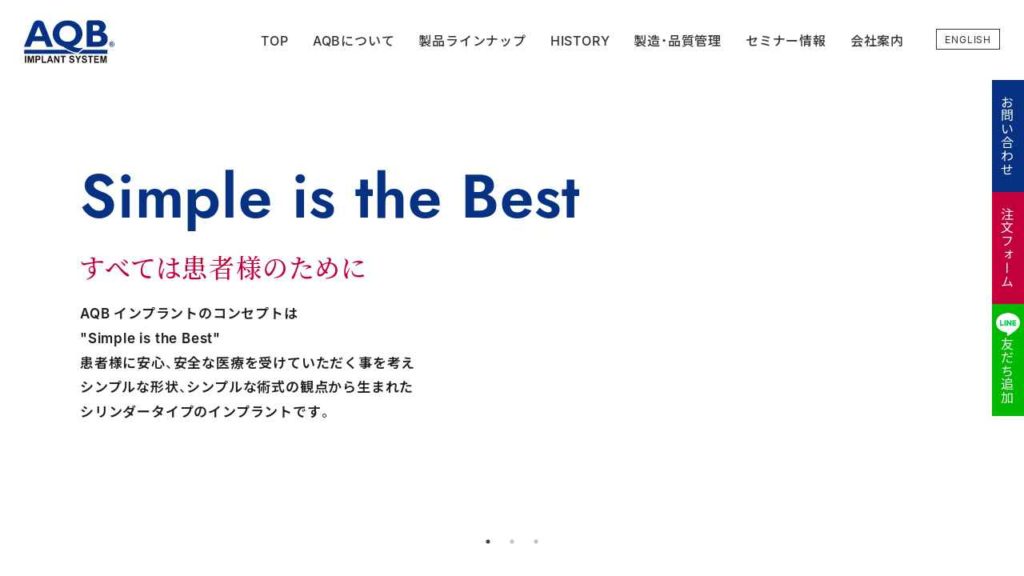 AQB株式会社は、主にインプラントの開発・製造・販売を行っている日本の企業です。1981年に東京医科歯科大学との共同研究を開始し、1994年から製造販売を行っています。製品は純国産で、高い安全性と信頼性を誇ります。 美容クリニックとの接点 AQB株式会... -