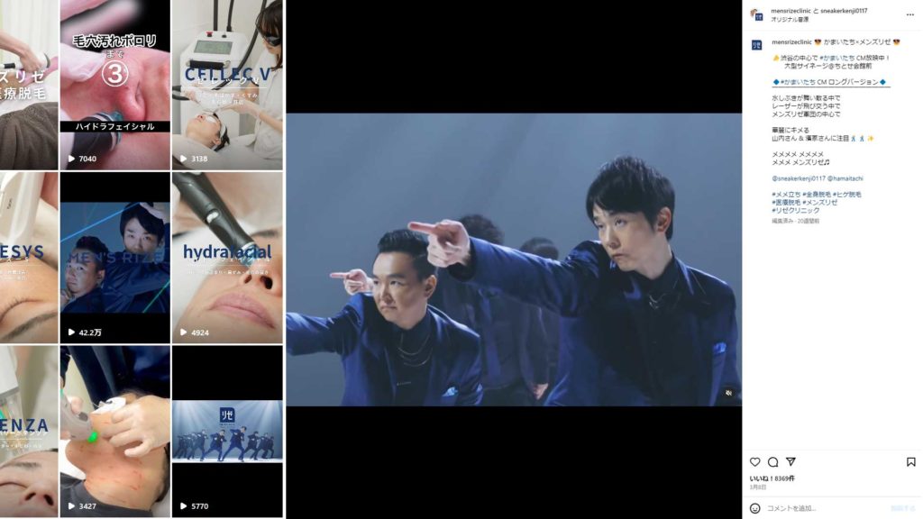 メンズリゼクリニックのインスタリールが成功した要因は、かまいたちという強力なインフルエンサーの起用、共感性の高いストーリー、ターゲット層への的確なアプローチ、SNSでの拡散力、そして高い動画クオリティなど、多岐にわたります。
