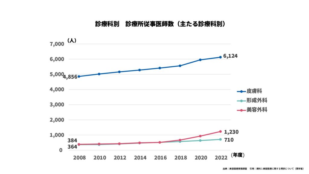 美容外科医の数は年々増加しており、特に若い世代の医師が多く参入しています。