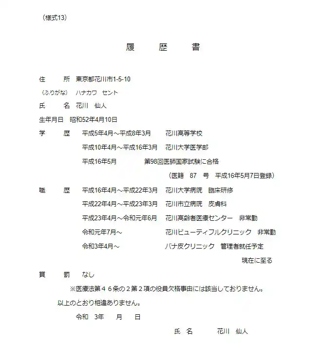 • 管理者の履歴書従事医師の医師免許証の写(原本持参)
