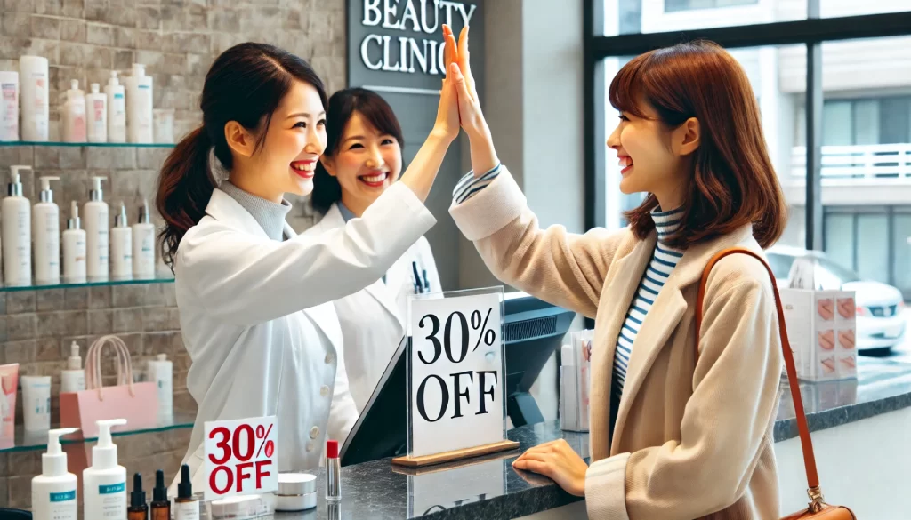 ある美容クリニックでは、開業時から紹介制度を取り入れ、「友人や家族を紹介してくれたら次回の施術が10%オフ!」という制度を実施しています。このクリニックは価格に敏感なZ世代に人気がありSNSで注目されています。紹介された患者さんも同じ制度を利用してくれるため、紹介の連鎖が生まれ、結果として人気クリニックに成長しています。