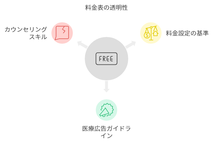 カウンセリングの際は、患者さんが望んでいる施術や悩みにしっかりと耳を傾け、無理な営業を避けることが重要です。患者さんの希望に沿った提案を行うことで、信頼関係を築きます。 - 料金表を明確に提示